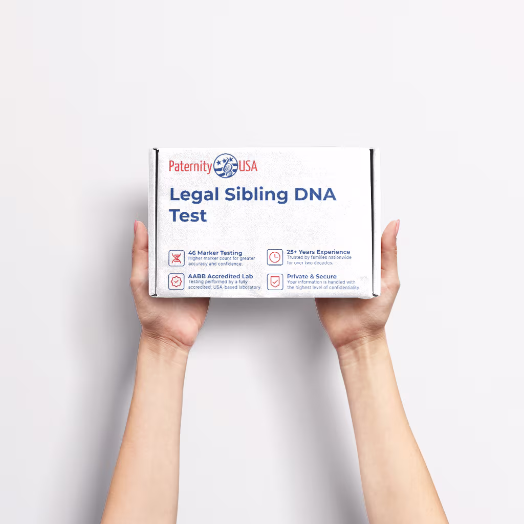 The Legal Sibling DNA Test determines whether two individuals share one or both biological parents, with results that are court-admissible in all 50 states. Testing follows a strict chain-of-custody process and is performed by an AABB-accredited U.S. laboratory to ensure accurate and reliable results.